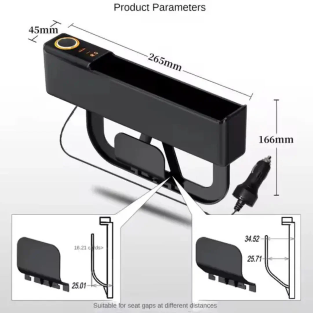 - قاعدة المنظم مضادة للانزلاق .. الشي اللي خليها ما تتحرك اثناء القيادة. مثالي للفراغ بين الكراسي دون ما يعيق حزام الأمان.