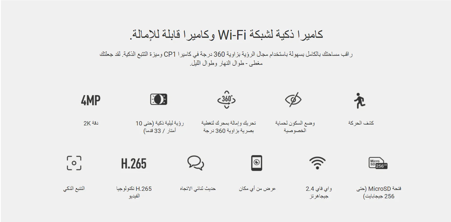 - تنبيهات ذكية: مزودة بنظام كشف الحركة الذي يرسل إشعارات فورية إلى هاتفك عند اكتشاف أي حركة مشبوهة.