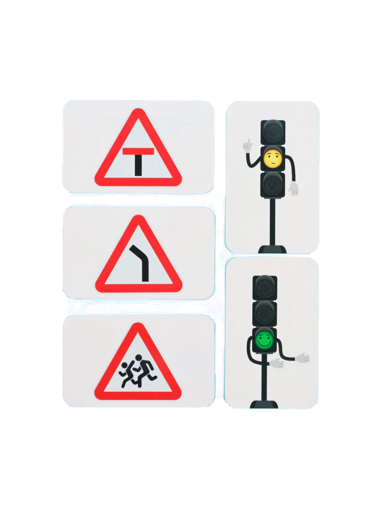 - 6 بطاقات لإشارات المرور ودلالات كل منها.