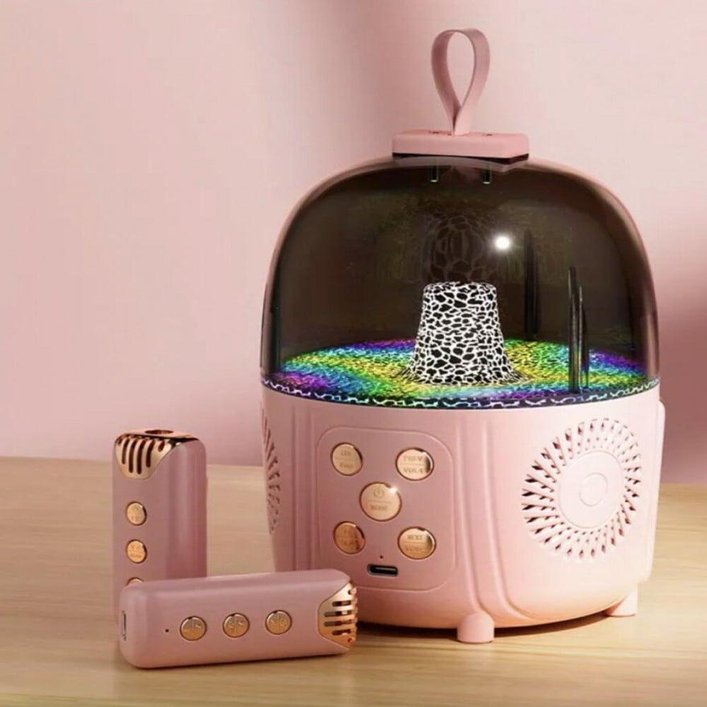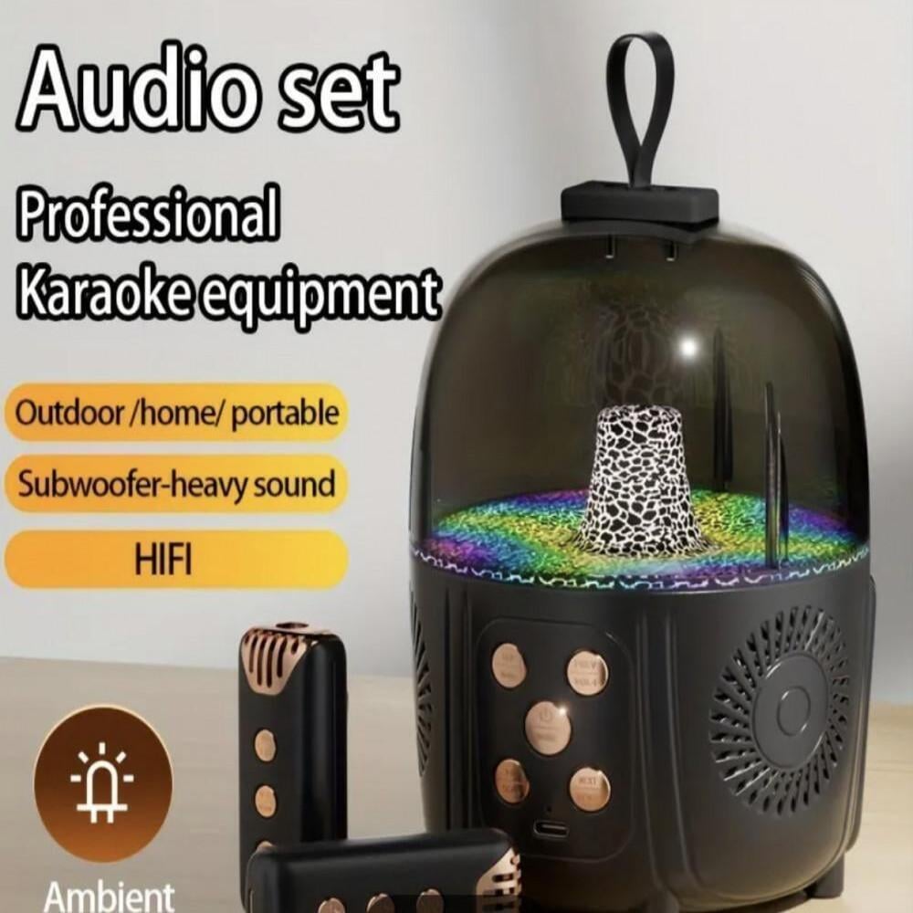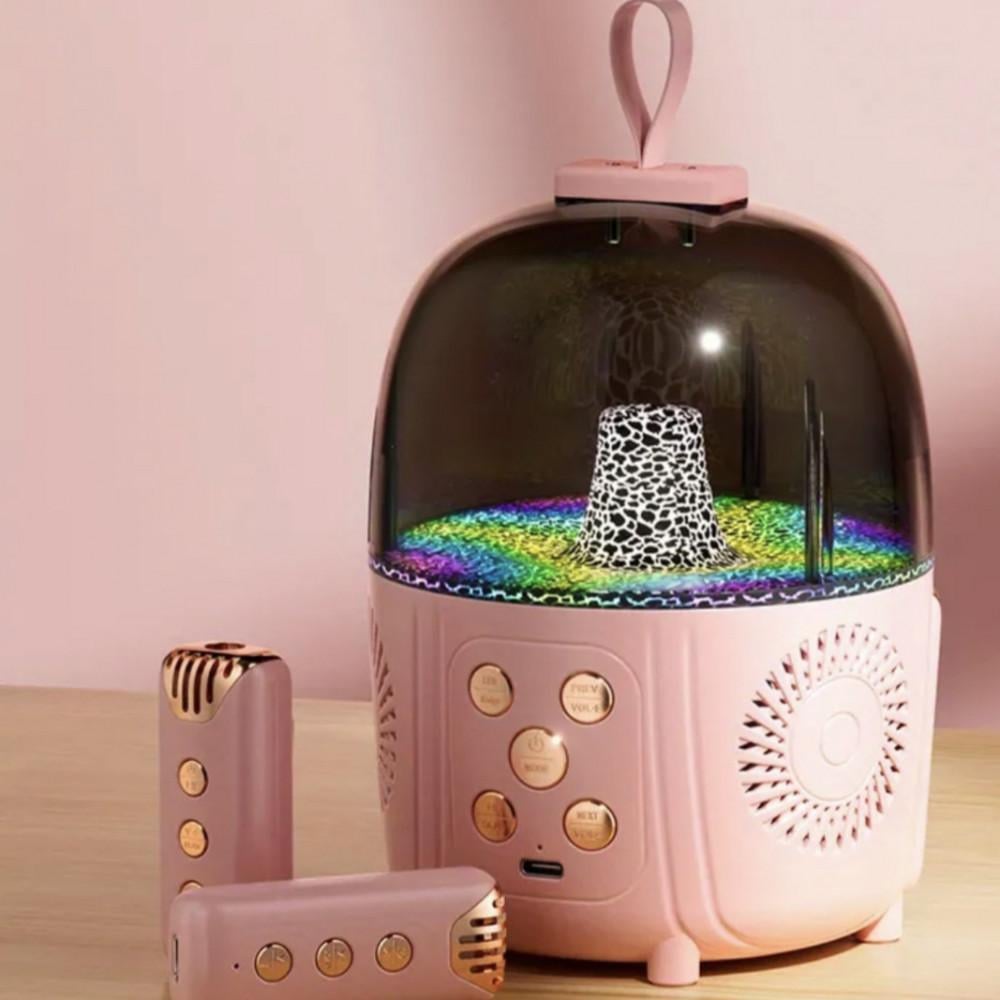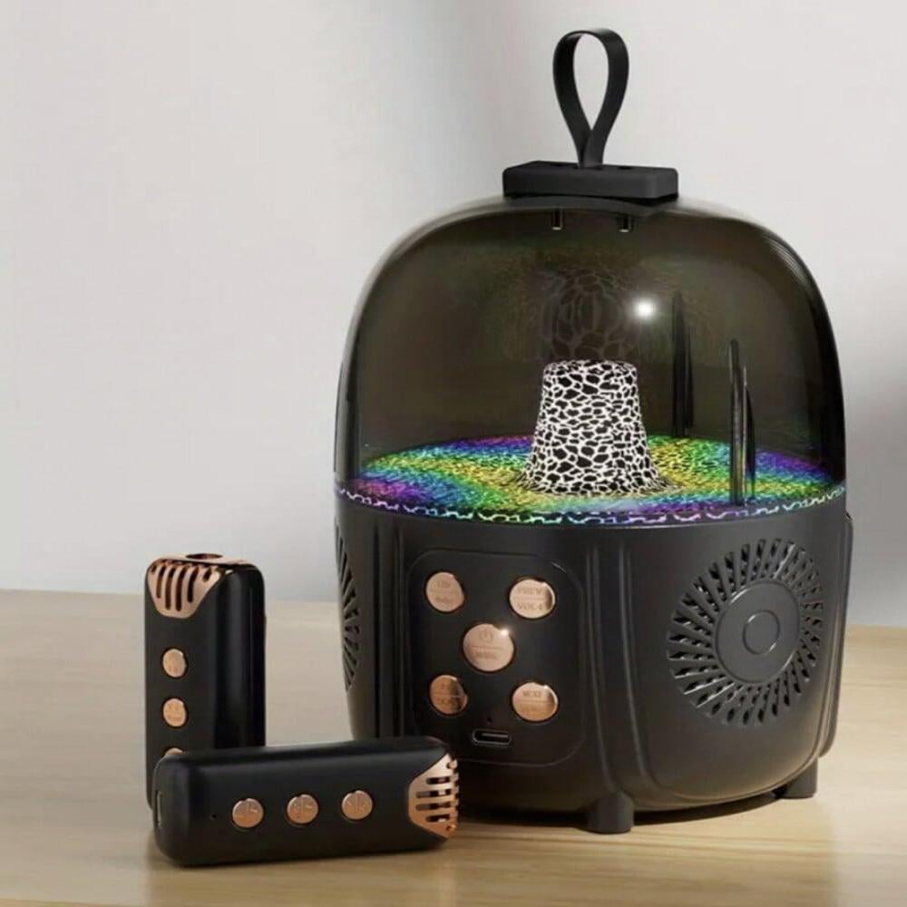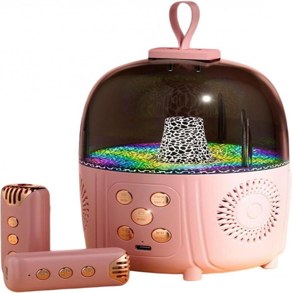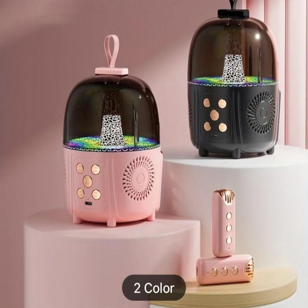 سبيكر مع مكرفونين لاسلكي ومدخل لذاكرة وبلوتوث مع الجوال و اضاءة ملونة