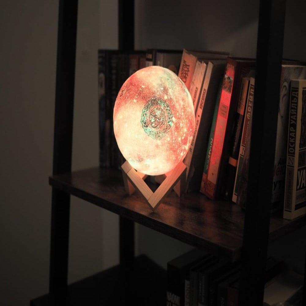 مصباح وسماعة القرآن الكريم على شكل قمر مضيء