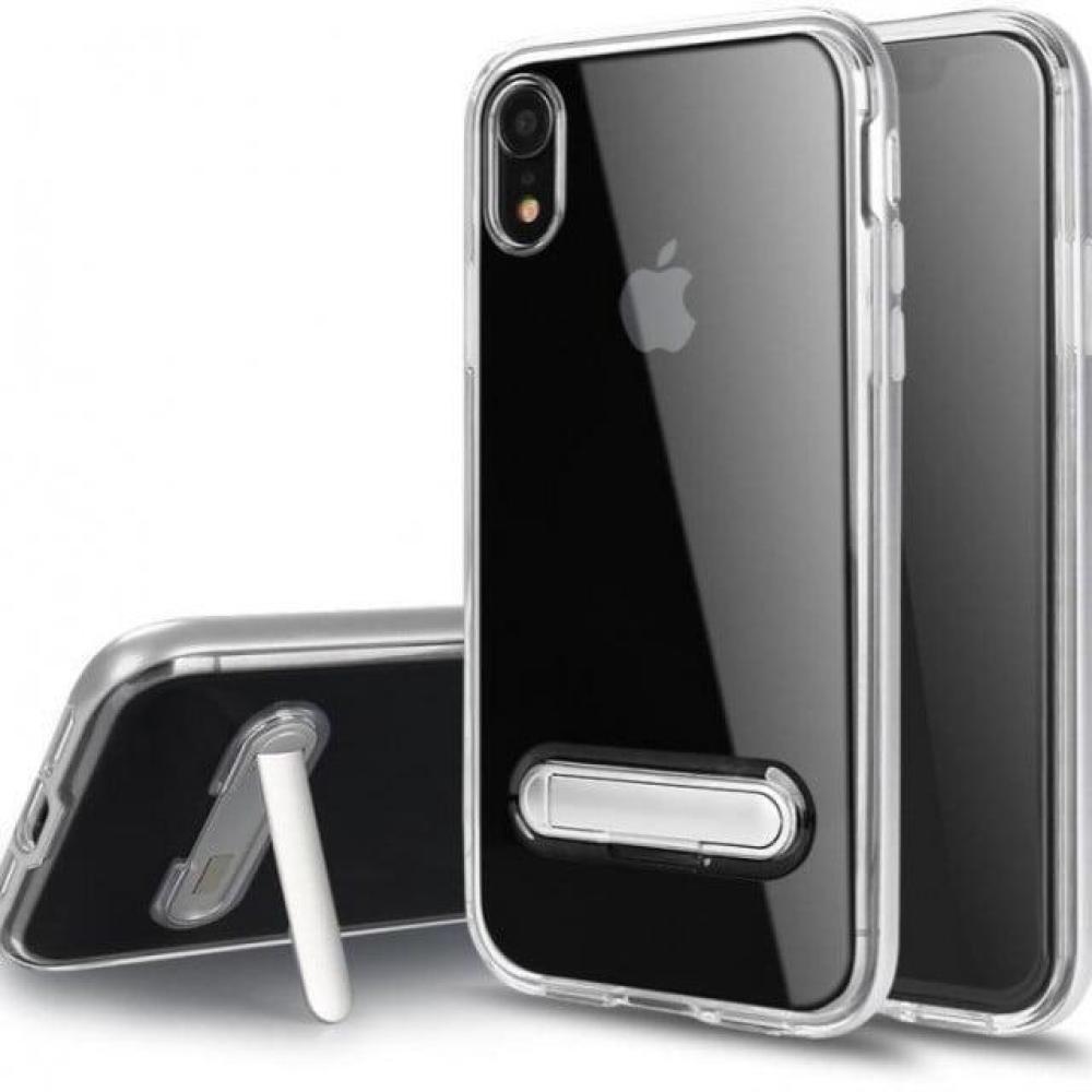 كفر شفاف بإطار فضي مع استاند لجوال iPhone XR