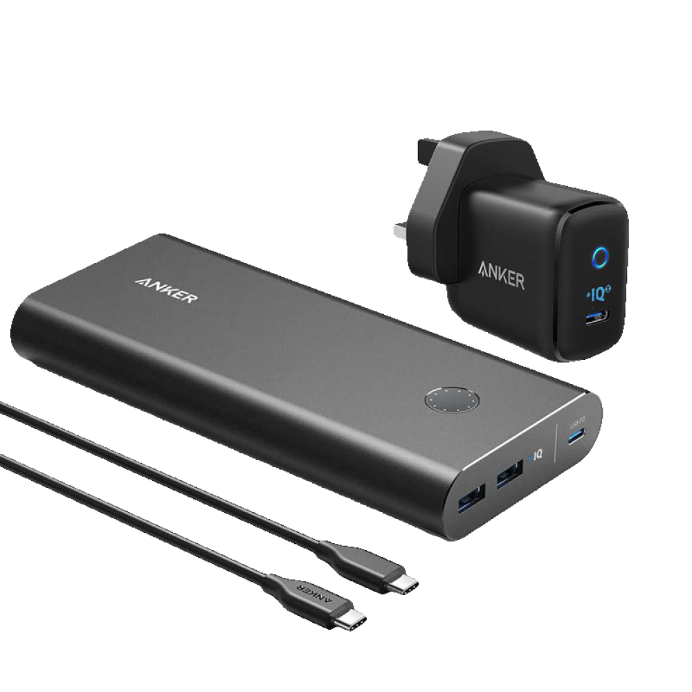 شاحن متنقل انكر باوركور بلس 26800 ملي امبير PD بقوة 45 واط و شاحن جداري PD بقوة 30 واط - اسود- Anker Power Bank PowerCore+ 26800mAh