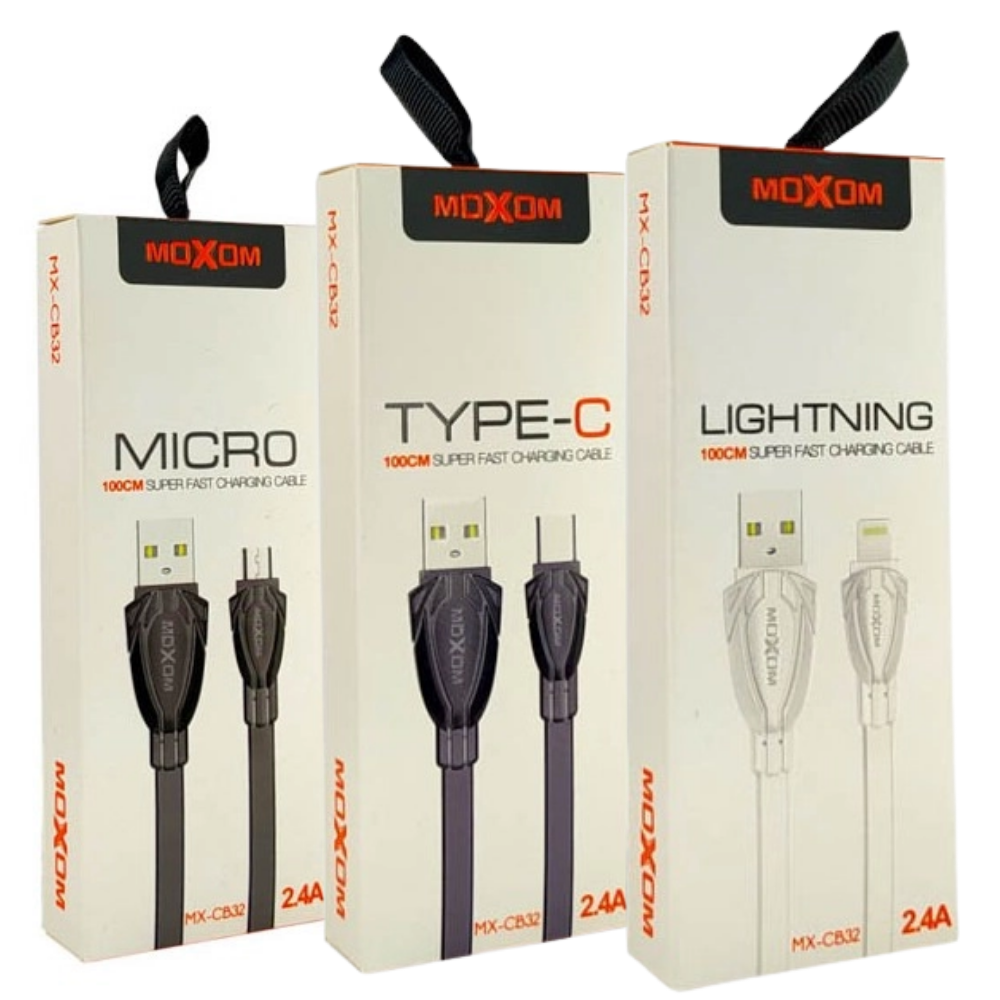 وصلة شحن/بيانات MX-CB32 موكسوم، شحن سريع 2.4A نقل البيانات عالي السرعة Moxom MX-CB32 Lightning / Micro / Type-C