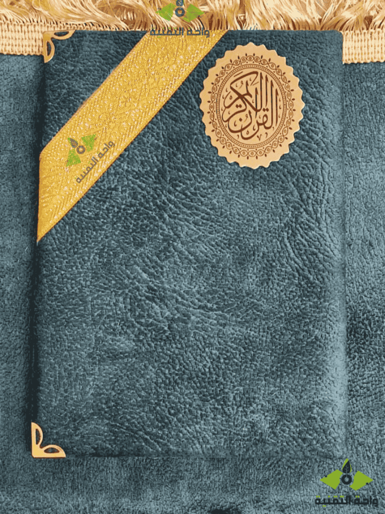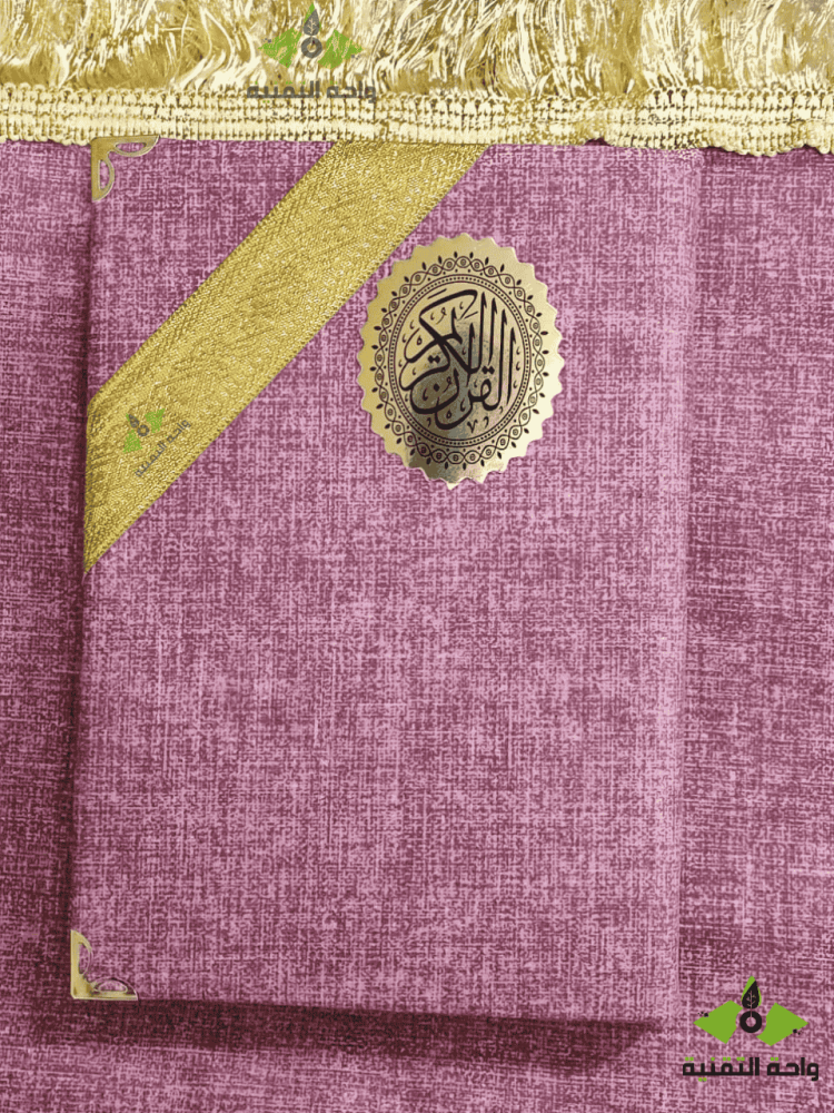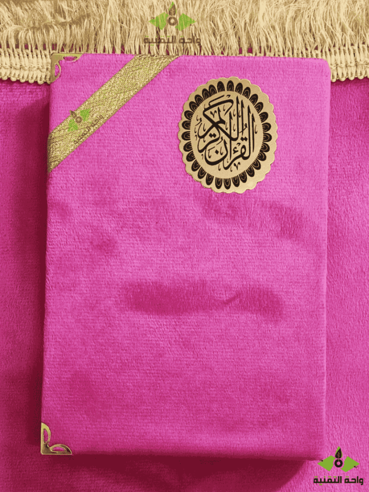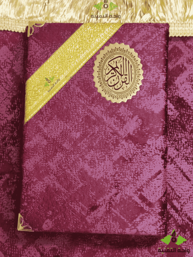 حيث يأتي المصحف بغلاف مخمل وتصميم رائع مع سجادة موافقة للغلاف بنفس التصميم مما يجعله هدية مناسبة للاقتناء الشخصي أو إهداء الأحباب.