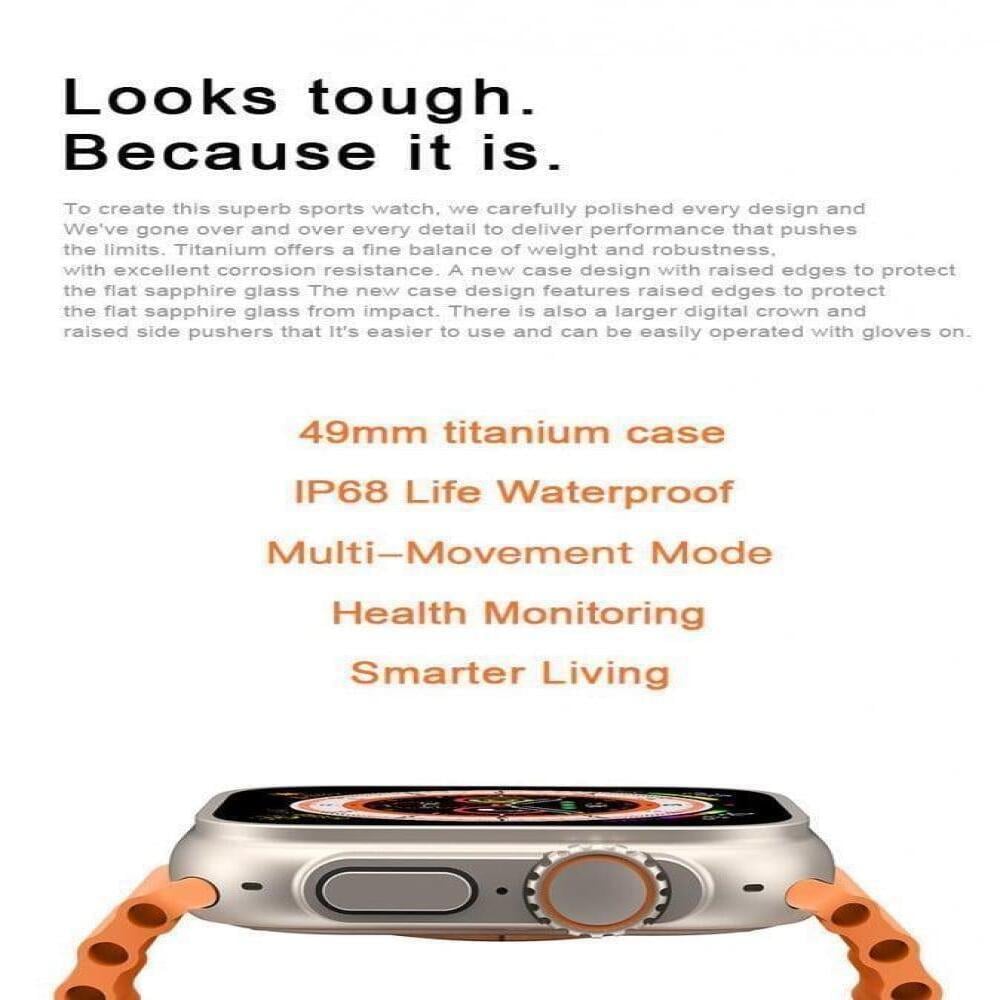 ساعة ذكية BASTEC شبيهة ابل الاصدار الثامن , بمقاس 49 mm تدعم الشحن اللاسلكي واللغة العربية - ضمان سنتين