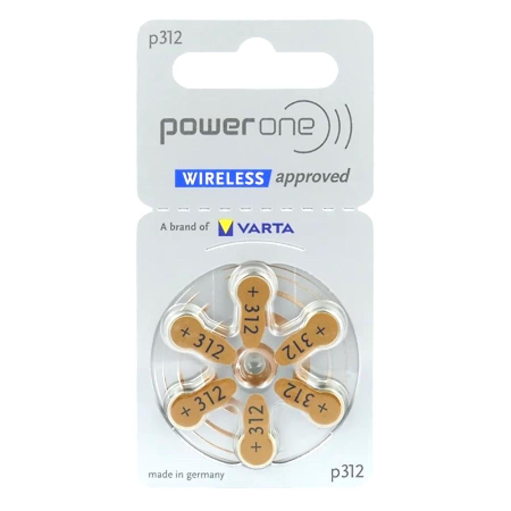 بطاريات باور وان P312 للمساعدة على السمع مع ملصق بني اللون - 6 قطع لكل علبه