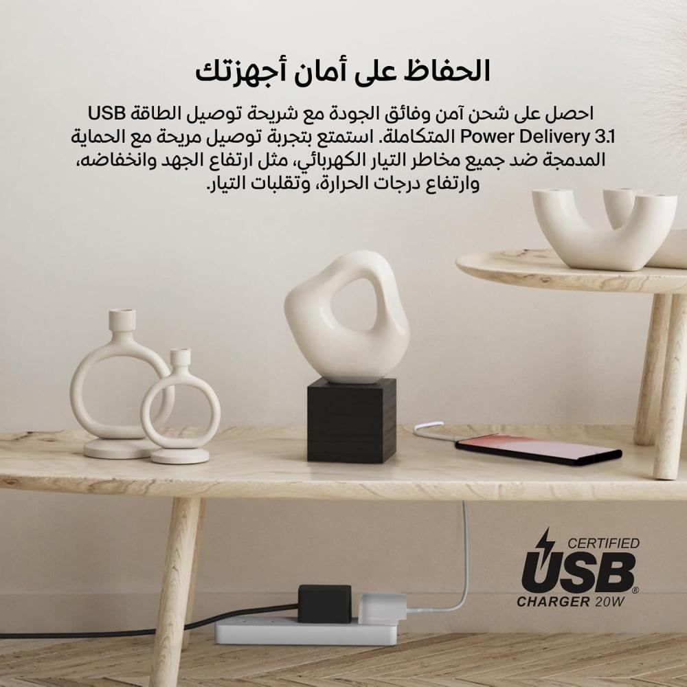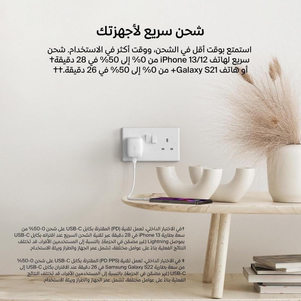 أضف إلى حياتك شاحن قوي وفعال وتمكن من شحن الجهاز الخاص بك بسرعة وكفاءة عالية وذلك من خلال شاحن ايفون USB-C Wall Charger 20W + USB-C Cable with Lightning Connector من Belkin والذي يتميز بتصميمه الجميل وأداءه العالي وجودة المواد المصنوع منها وسهولة أستخدامه ووصله وفعاليته الكبيرة واستطاعته العالية