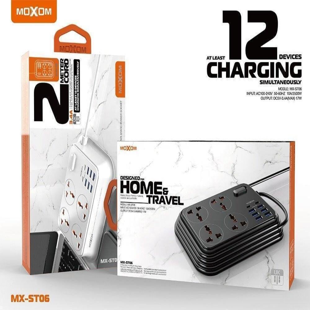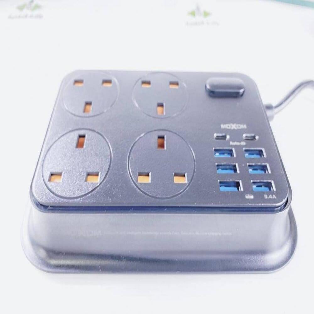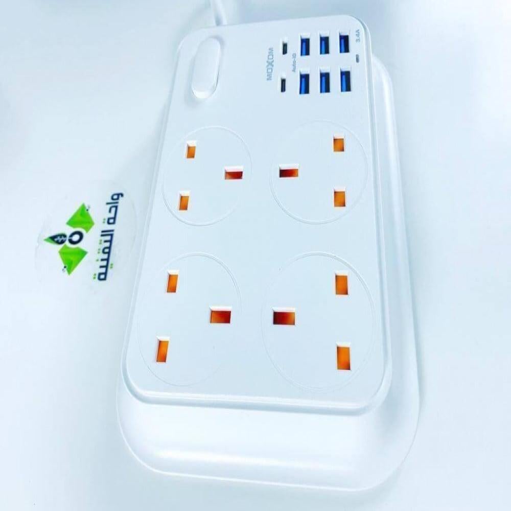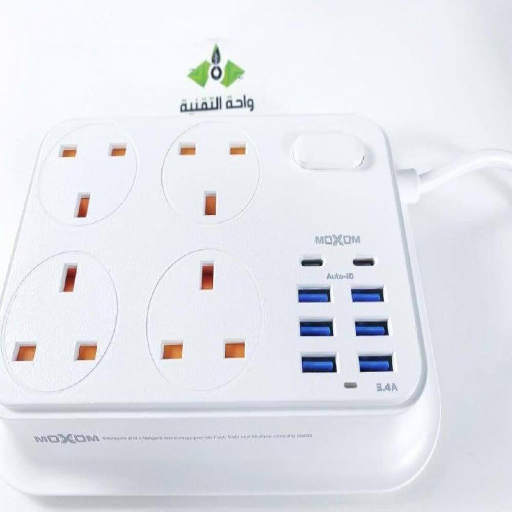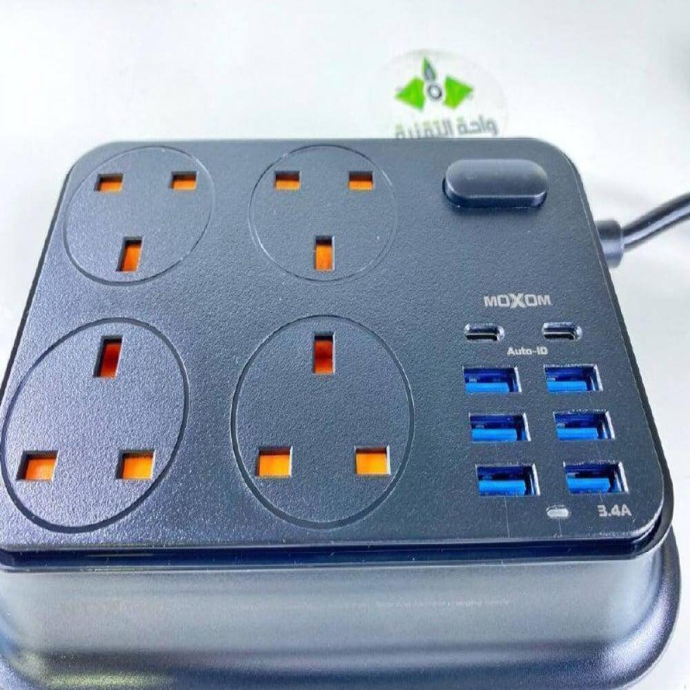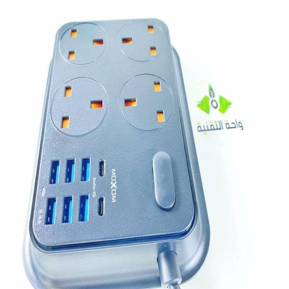 توصيلة كهربائية تدعم الشحن السريع بقوة 3.5A مزود بــ 4 مقابس كهرباء و 6 منافذ USB ومنفذين PD Type-C من موكسوم