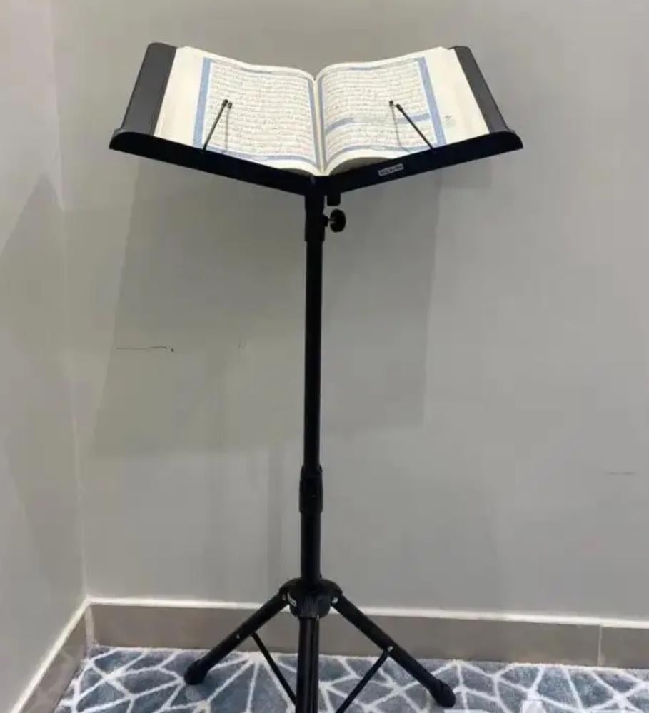 حامل القران الكريم استيل مرن وسهل التنقل والحمل بتحكم كامل بقاعدة المصحف والارتفاع بشكل يدوي