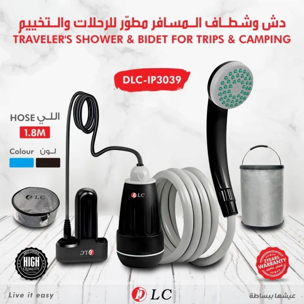 استمتع بالنظافة والراحة وين ما تكون مع دش وشطاف المسافر موديل DLC-IP3039 من واحة التقنية. الجهاز مصمم خصيصًا لعشاق الرحلات والكشتات، ويجيك بسطل قابل للطي بسعة 15 لتر وبطارية قوية بحجم 2200mAh قابلة للشحن، تكفيك استخدام متواصل حتى 36 دقيقة.