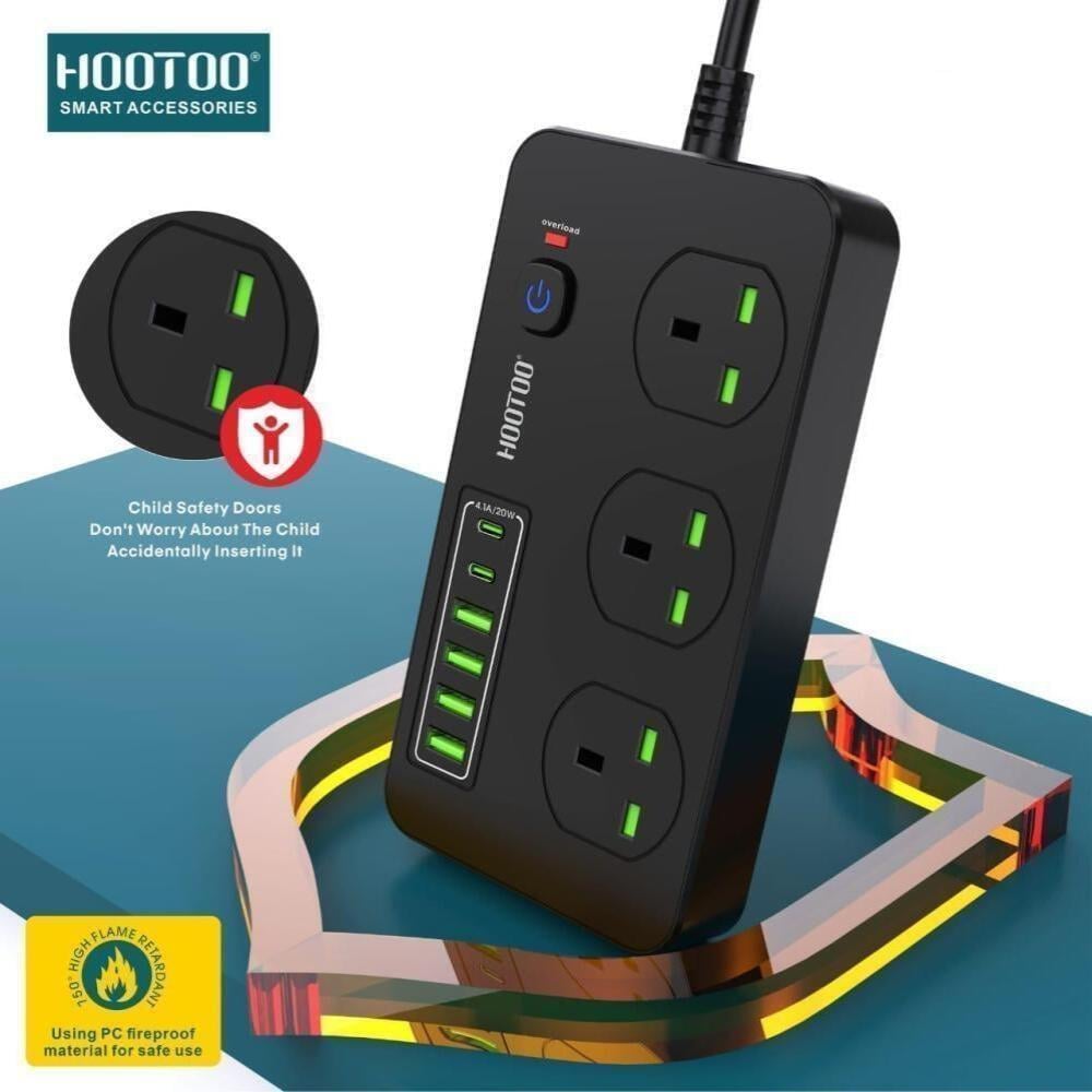 توصيلة كهرباء 3 مقابس مع منافذ USB و مدخلين PD من هوتو