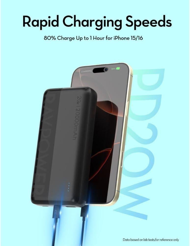 شحن سريع PD/QC: يضمن توصيل الطاقة بقدرة 20 واط أن يصل شحن هاتف iPhone 15/16 الخاص بك إلى 80% خلال ساعة واحدة فقط.