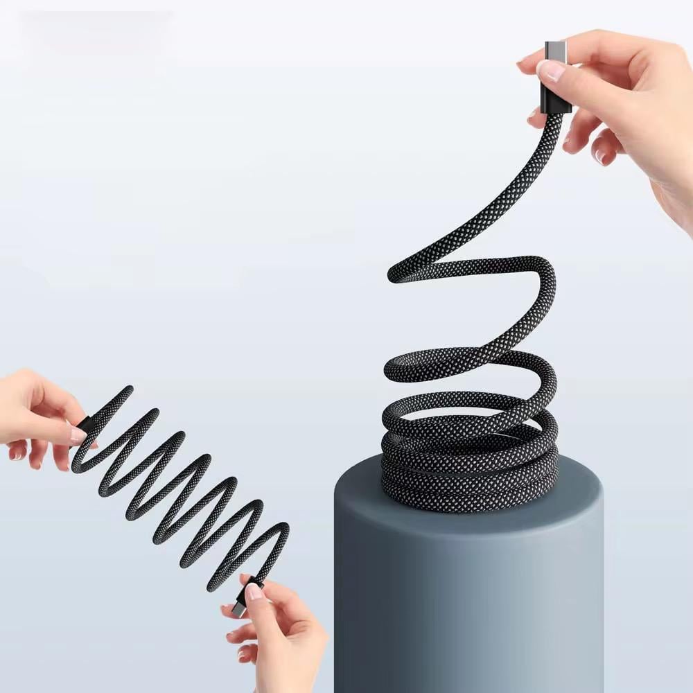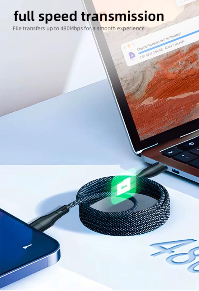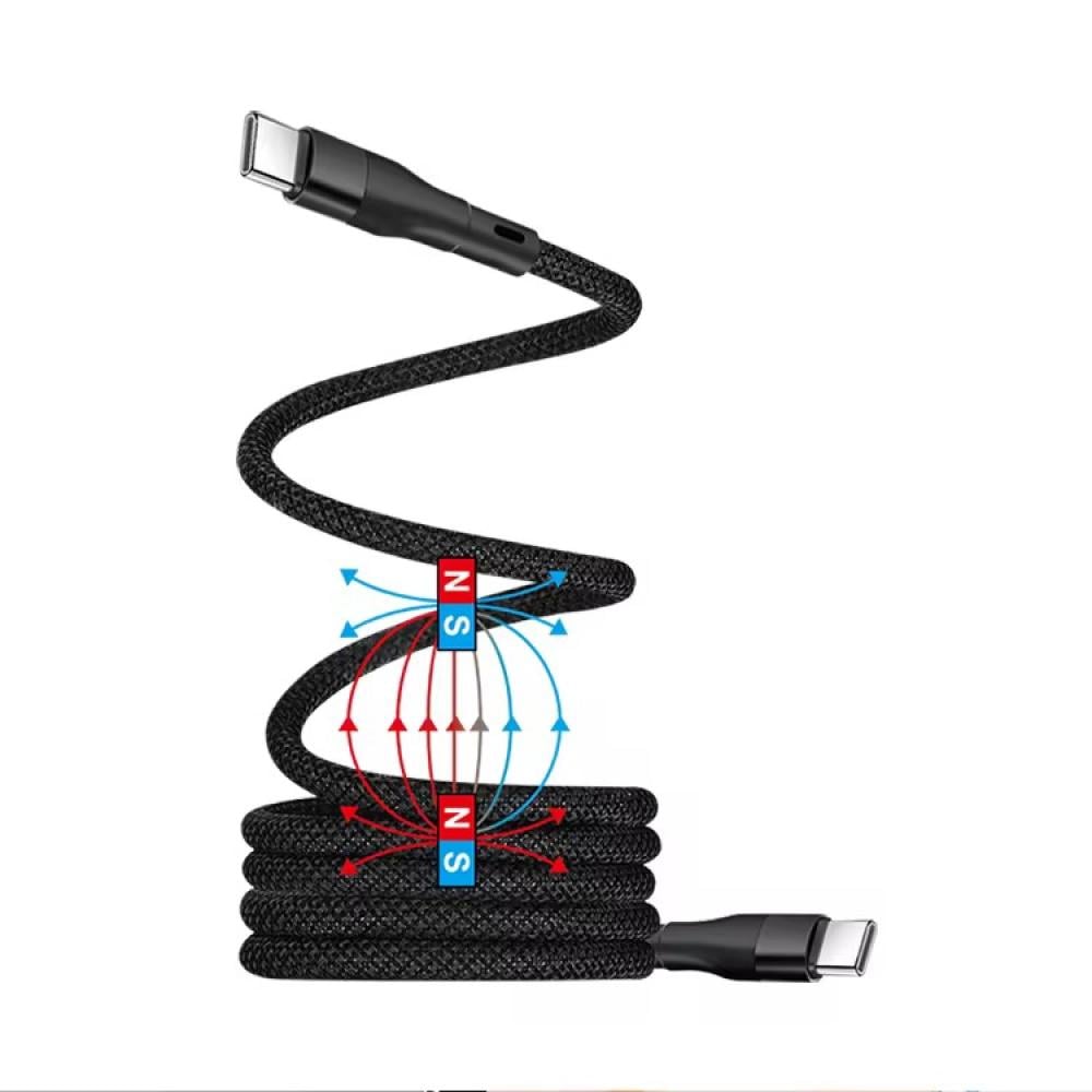 الحل الذكي الذي يجمع بين الابتكار والأناقة بكل سهولة. تمتع بالراحة الفريدة التي يوفرها تصميمه المغناطيسي المدمج بشكل سلس مع الكابل، مما يضمن تنظيمًا مثاليًا وبيئة خالية من الفوضى لأنشطتك اليومية. استمتع بسهولة التوصيل مع جاذبية الاتصال السلسة والشحن السريع بقدرة 240 واط. يضمن الكابل الذي يبلغ طوله متر و مترين توازنًا مثاليًا بين الراحة في المنزل والمرونة أثناء التنقل. يمكنك أيضًا نقل البيانات بسرعة تصل إلى 480 ميجابت في الثانية وذلك بفضل كابل نايلون متين يحتوي على قلب نحاسي قوي. استمتع بتجربة شحن خالية من التعقيد مع جهاز أيفون 16 وأجهزة أخرى."، يمزج الأداء بالأناقة بكل سلاسة.