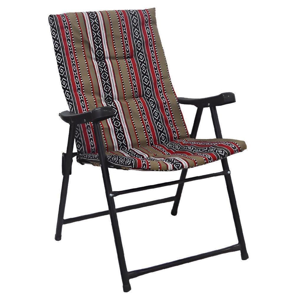 أضف لمسة من الفخامة والراحة إلى رحلاتك الخارجية مع هذا الكرسي المبطن القابل للطي بنقش السدو التراثي.