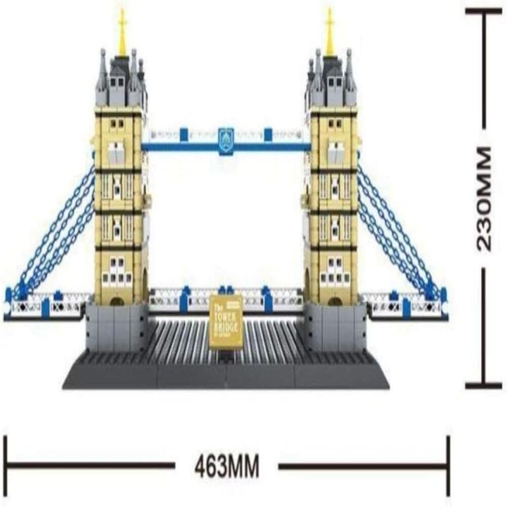 - يعد تجميع جسر البرج تحديًا حقيقيًا لعشاق ألعاب الكتل. ما يقرب من 1000 قطعة تسمح لك بتجميع نموذج نهائي مقاس 46.2 × 17.5 × 23 سم.