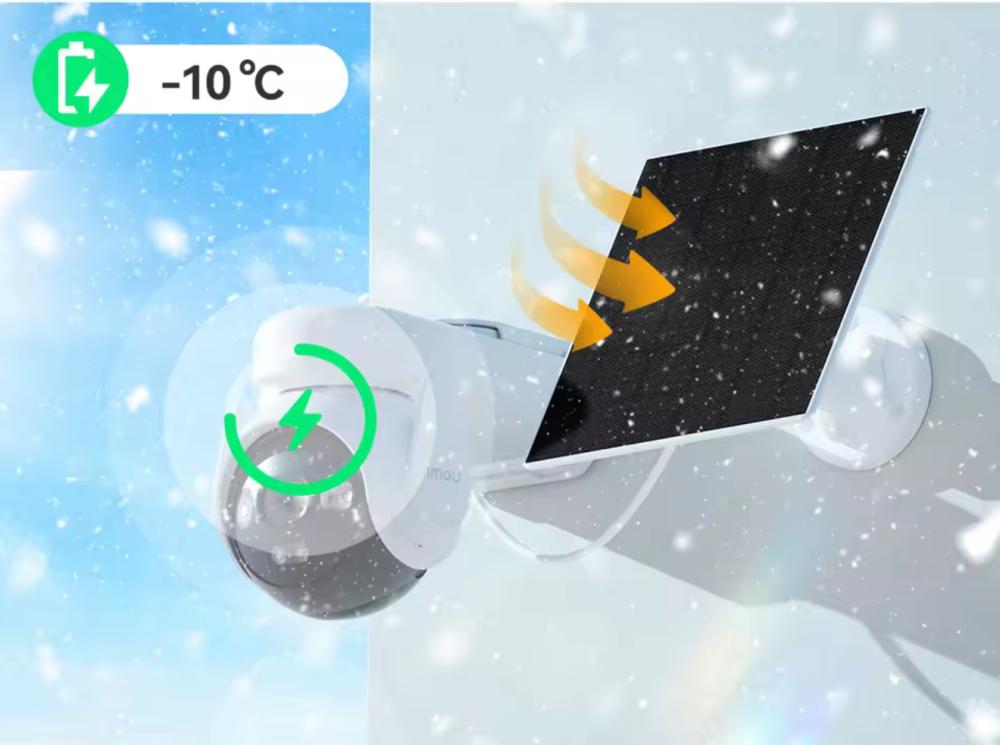 عندما يلي الشتاء، تواجه كاميرات البطارية عادة مشكلة عدم القدرة على الشحن.ولكن لا تقلق، مع أحدث تقنيات الشحن ذات درجة الحرارة المنخفضة من IMOU، يمكن شحن AOV PT حتى عند -5°℃.(يتم الشحن عبر الطاقة الشمسية باستخدام تقنية التسخين بدرجة حرارة منخفضة عند -10-0، مما يضمن التشغيل الخالي من القلق في الشتاء.)