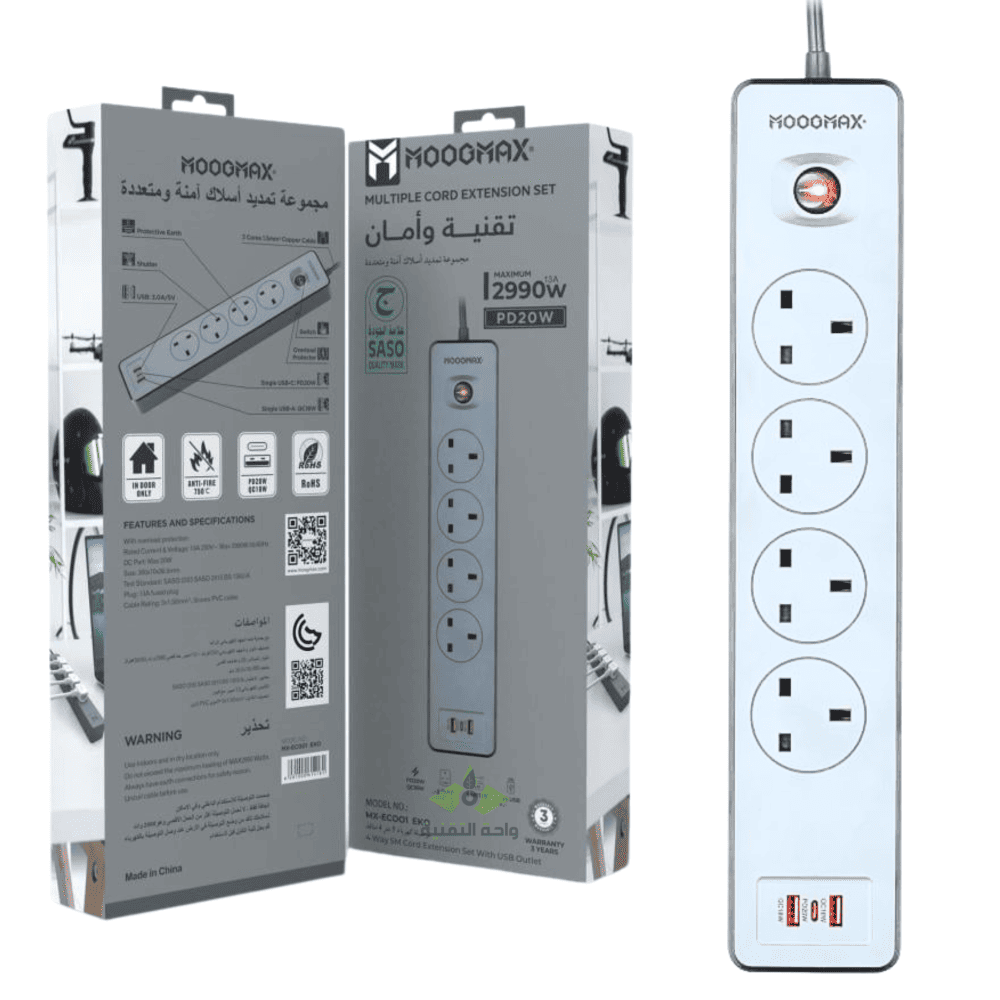 وصلة كهرباء متعددة الاستخدامات من "MOOGMAX"، تجمع بين التصميم العصري والتقنية المتقدمة لضمان تجربة أمان وفعالية مثالية للمنازل والمكاتب. مع قدرتها العالية على تحمل الطاقة والتقنيات المتطورة، تُعتبر الخيار الأمثل لإدارة الأجهزة الإلكترونية والأدوات الكهربائية المتعددة بكفاءة وأمان.