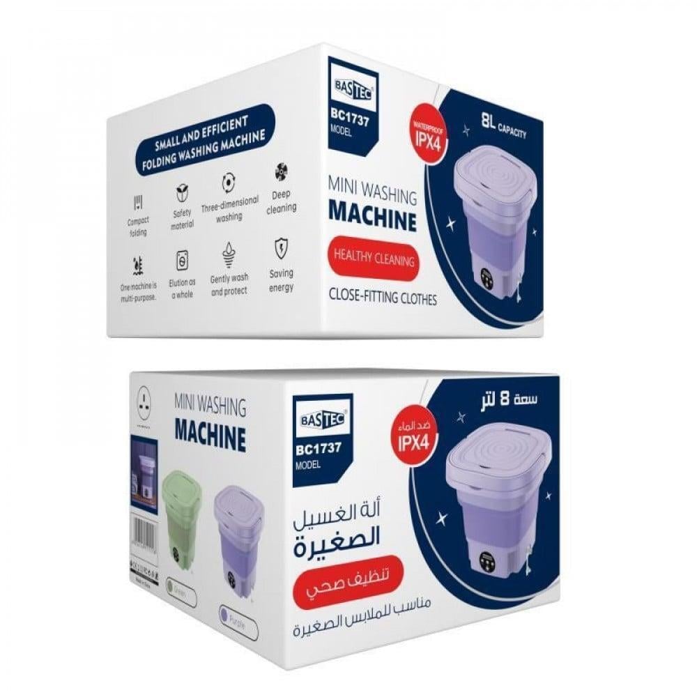 غسالة صغيرة متنقلة سفر باستك BASTEC- BC1737 قابلة للطي للتجفيف والتعقيم - 8 لتر لجميع أنواع الملابس