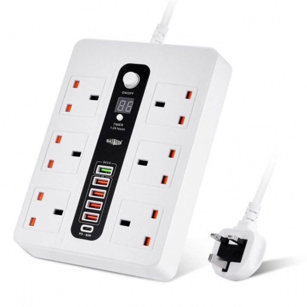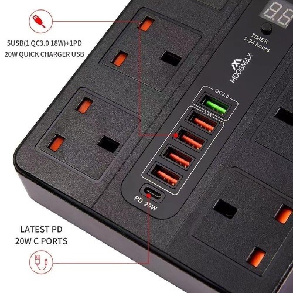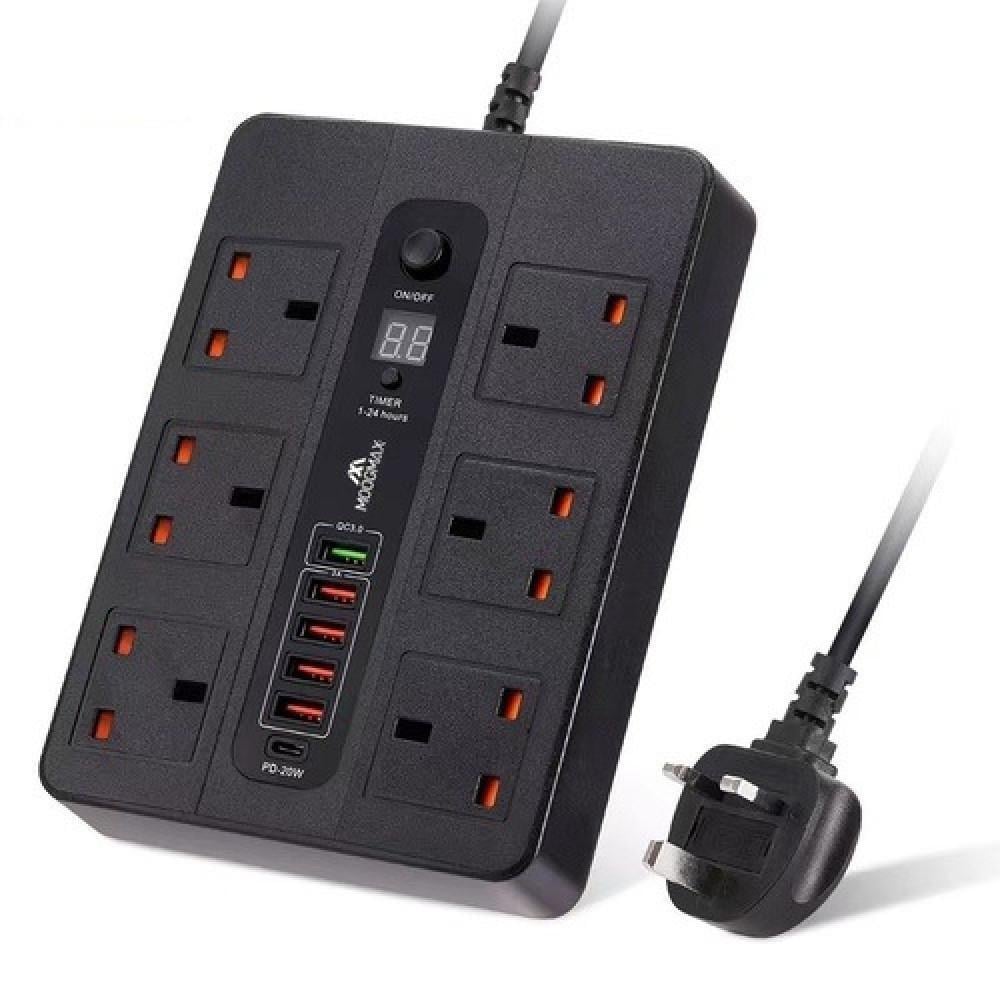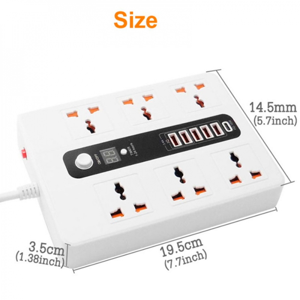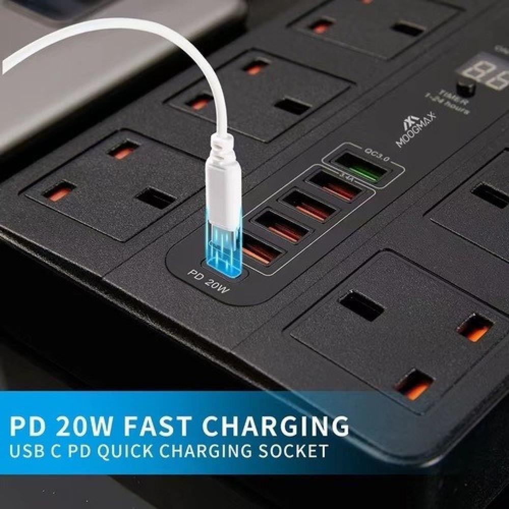 - تحتوي على 6 منافذ للشحن 5 منها USB-A واحد يدعم خاصية الشحن السريع QC3 و عدد منفذ واحد Type-C بخاصية PD 20W الشحن السريع لكل من أجهزة الأبل والاندرويد.