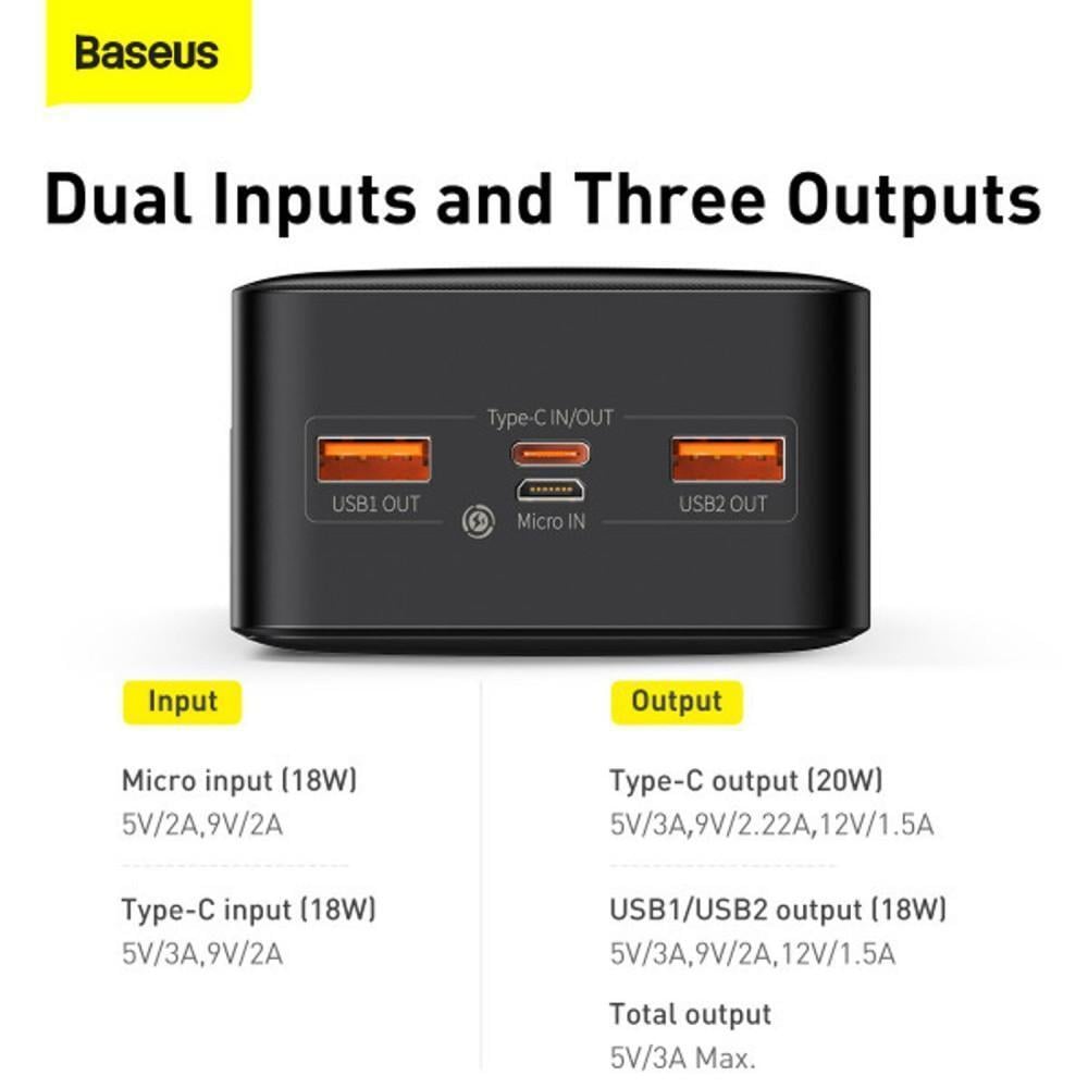 باور بانك بطارية بيسوس متنقلة 30000mAh من Baseus تدعم الشحن السريع PD بقوة 20 واط مزودة بشاشة رقمية LED