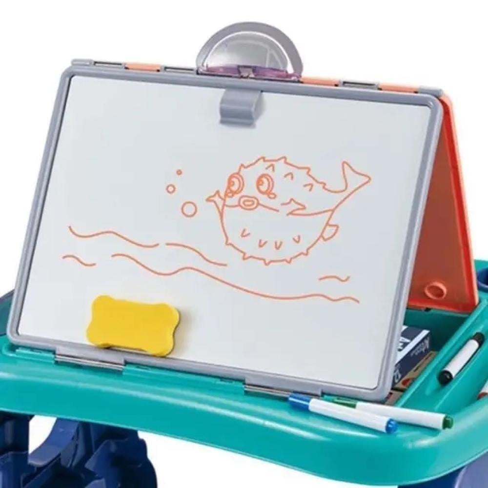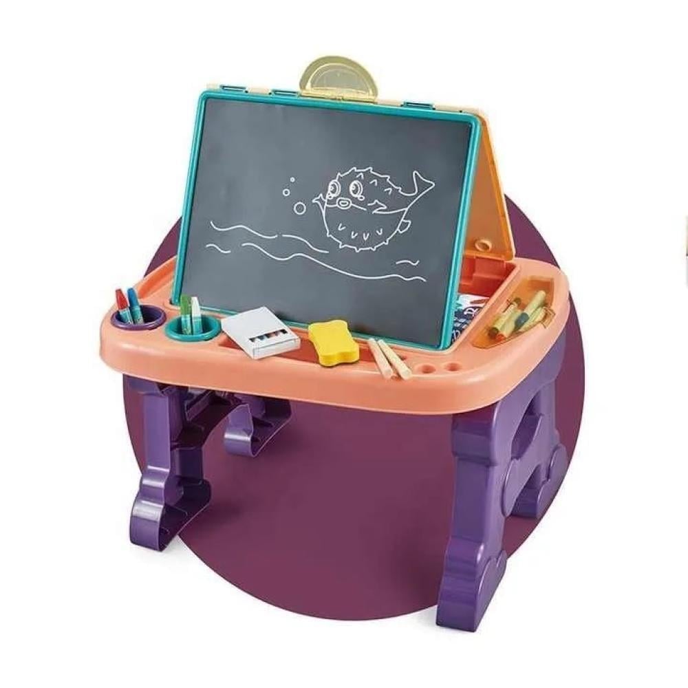 طاولة الدراسة ولوح بوجهين للرسم وتعليم للاطفال
