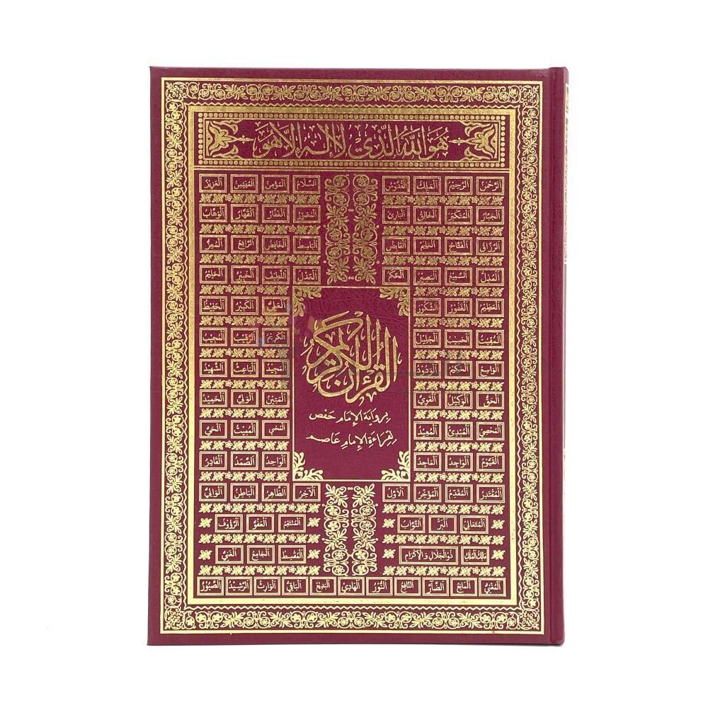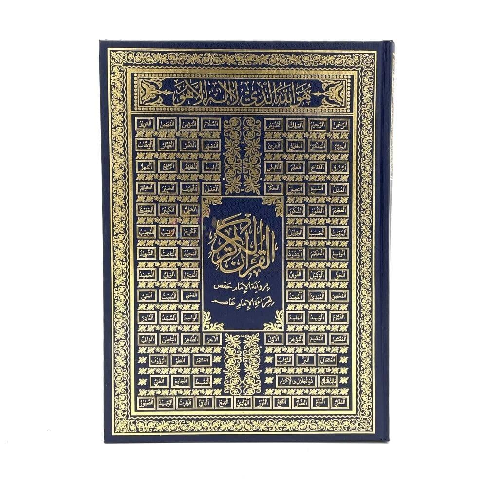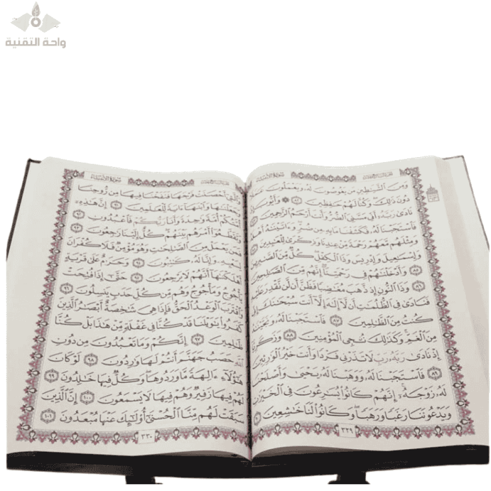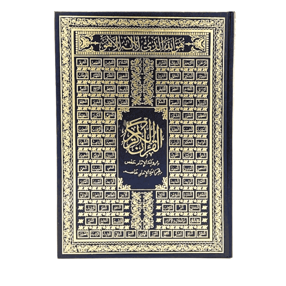 جميع اسماء الله الحسنى على غلاف المصحف وميزة المصحف انه بخط كبير يسهل للقارئ قراءة المصحف بسهوله ويسر مريح للعين بخلفية بيج طبية للعين ومصحف اسماء الله الحسنى من المصاحف المميزة واكثر وضوح في الخط