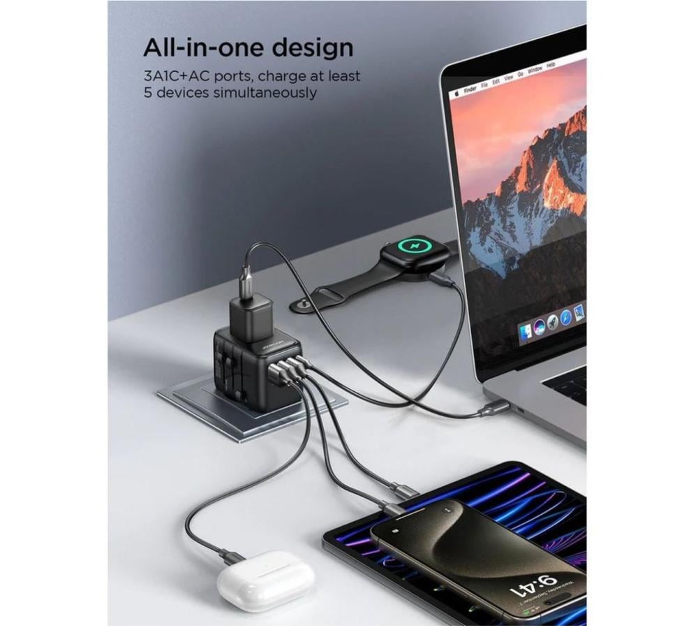 تصميم شامل، 3C2A + منافذ AC، يشحن على الأقل 6 أجهزة بنفس الوقت؛