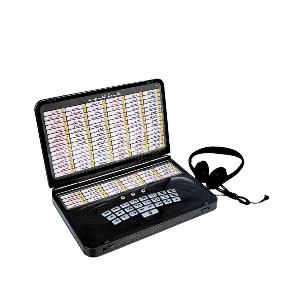 جهاز على شكل لابتوب يحوي كامل القرآن الكريم، بصوت أشهر القراء: السديس والشريم ومحمد صديق المنشاوي وعبدالله بصفر