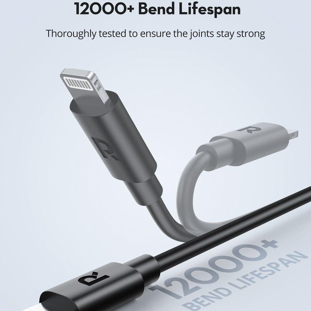 كيبل من راف باور Type-C إلى Lightning بخاصية الشحن السريع PD معتمد من ابل بطول 1 متر - RAVPOWER RP-CB1016