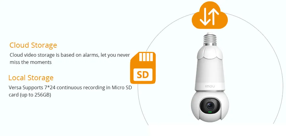 مع خيارات التخزين المتعددة يمكنك اختيار مكان لحفظ التسجيلات الخاصة بك ويمكن للكاميرا واي فاي الحفظ في موقعين في نفس الوقت لمزيد من النسخ الاحتياطي في حال تلف الكاميرا أو تعطل الشبكة الخاصة بك.