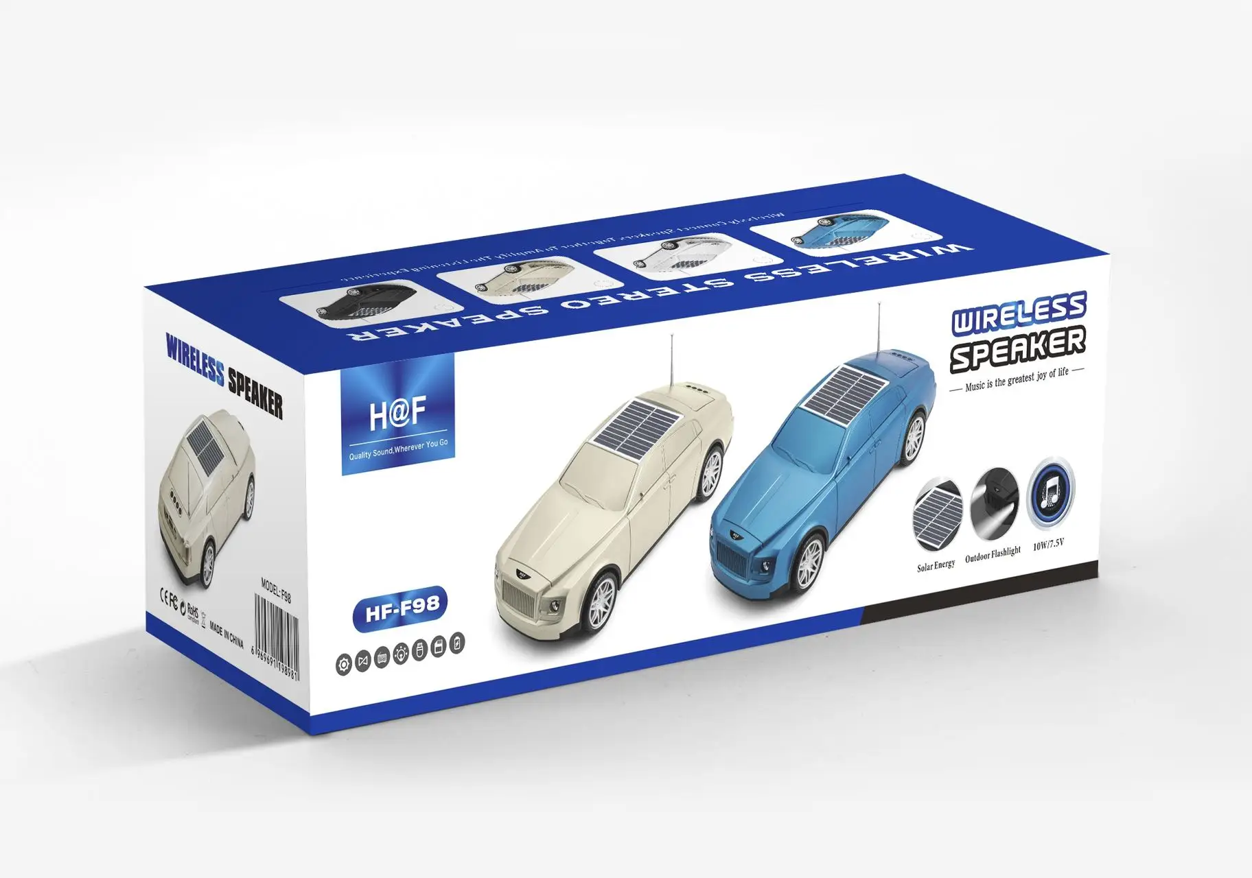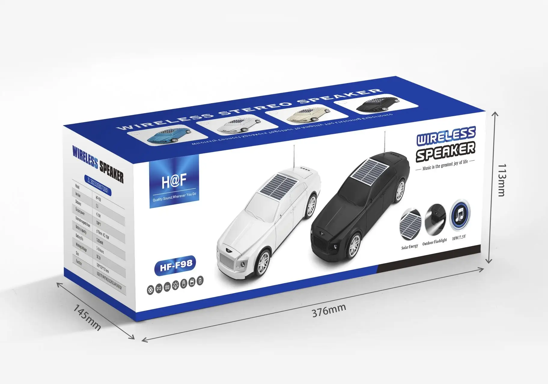 سبيكر بصوت عالي على شكل سيارة بطارية 1200Amh مكبر صوت بلوتوث محمول بتصميم سيارة فاخرة يعمل بالطاقة الشمسيةF98