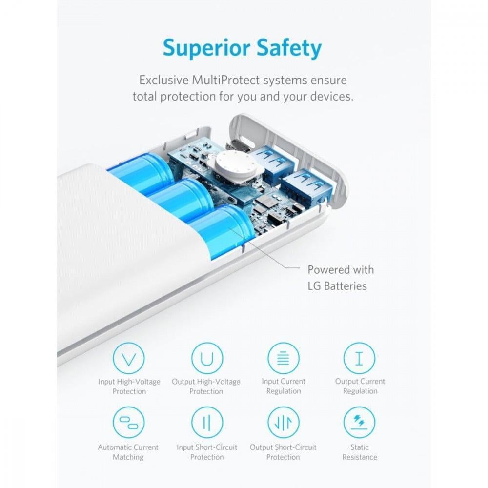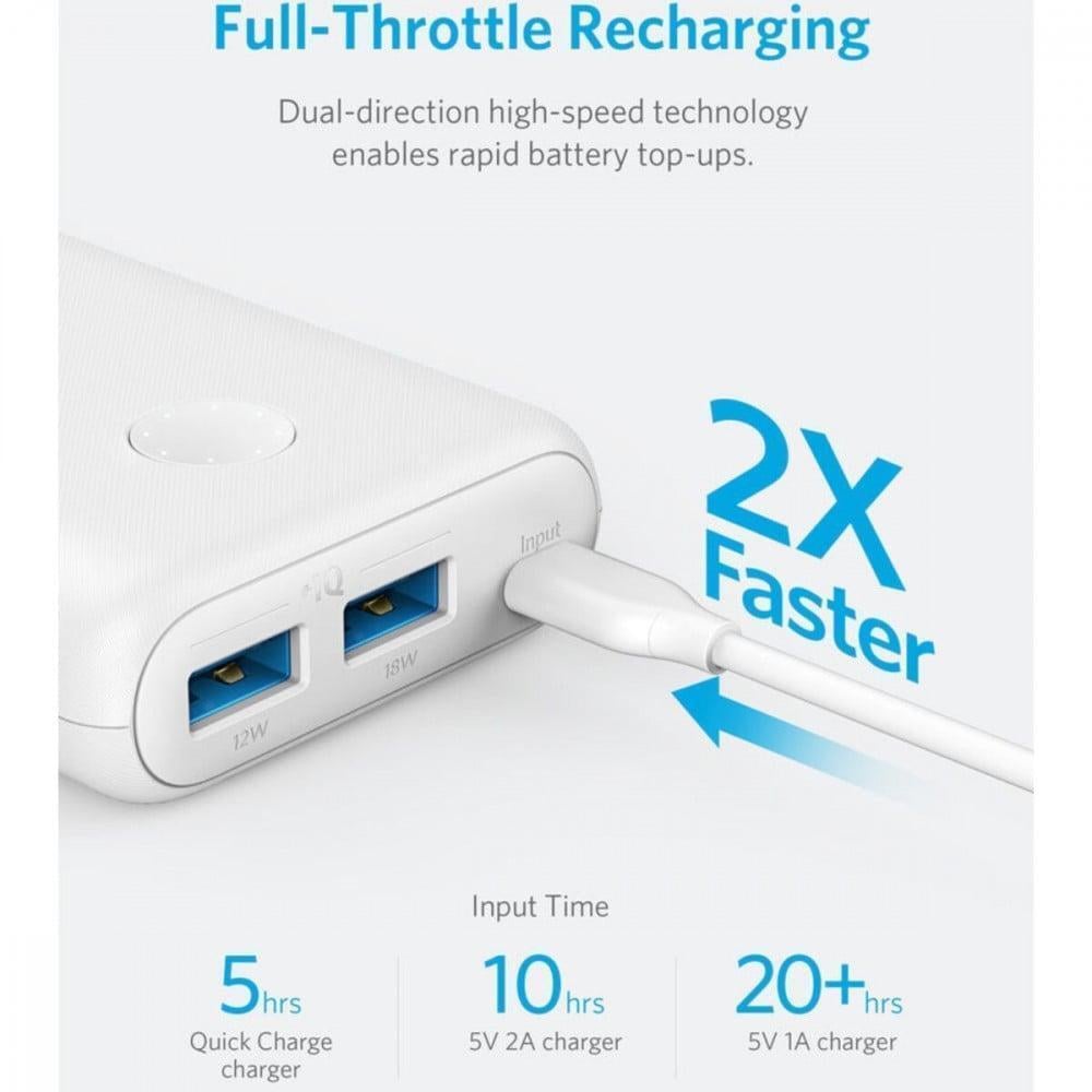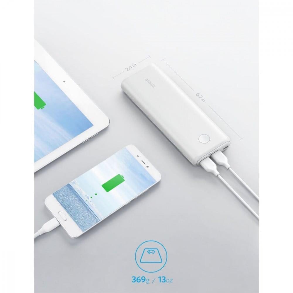 شاحن انكر باور كور سيلكت، أبيض يتميز بتقنية آي كيو للحفاظ على بطارية هاتفك لمعرفة قوة الأمبير المناسبة لها