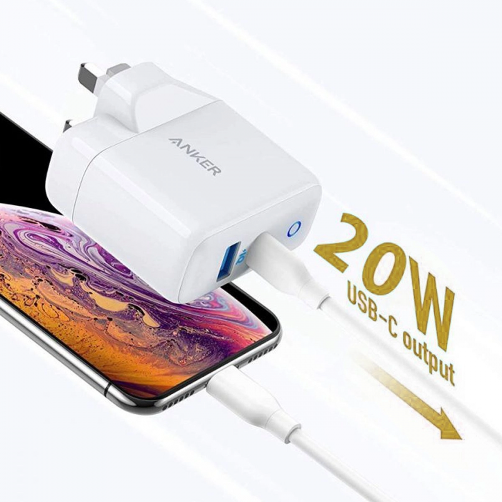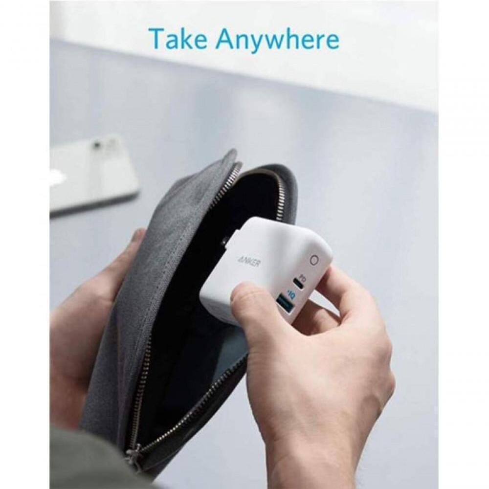 شاحن جداري أنكر باور بورت بقوة 35 واط بمنفذين USB-C و USB-A - أبيض