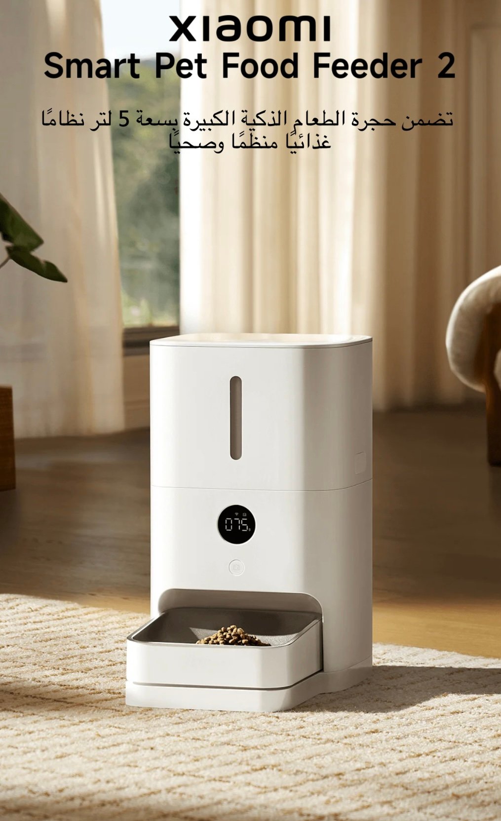 موزع طعام الحيوانات الأليفة الذكي Xiaomi Smart Pet Food Feeder 2 بسعة 5 لتر هو جهاز ذكي مصمم لمساعدة أصحاب الحيوانات الأليفة على إدارة تغذية حيواناتهم بشكل آلي ومريح ومثالي للأشخاص الذين يسافرون أو يقضون أوقاتًا طويلة خارج المنزل، حيث يساعد في ضمان تغذية الحيوانات الأليفة بانتظام.
