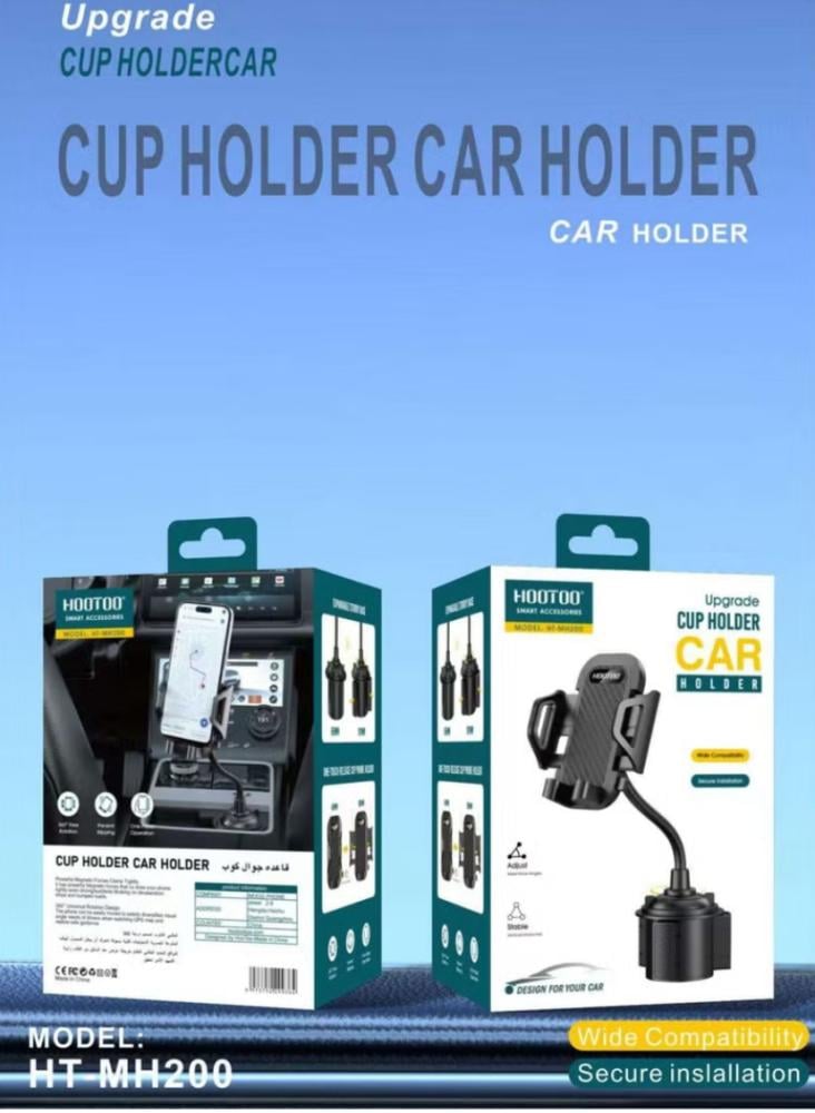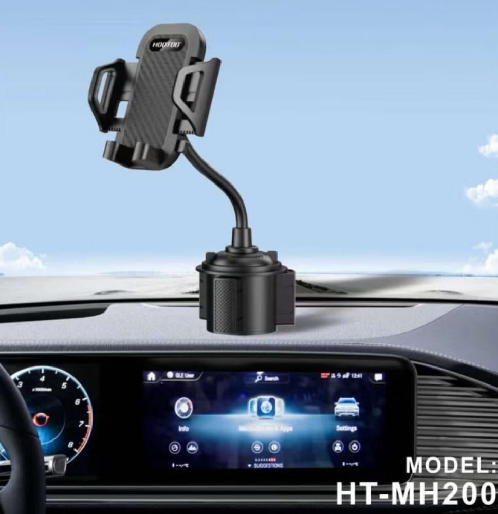 هذا حامل هاتف للسيارة موديل HT-MH200، مصمم للتركيب في مكان حامل الأكواب داخل السيارة. يتميز بتصميم متين وقاعدة مضادة للصدمات مع وسادات مطاطية تمنع الانزلاق وتحمي الهاتف من الخدوش والسقوط. الحامل يدعم دوران 360 درجة لسهولة ضبط زاوية الرؤية، ويمكن استخدامه بيد واحدة لتثبيت وإزالة الهاتف بسرعة وأمان.