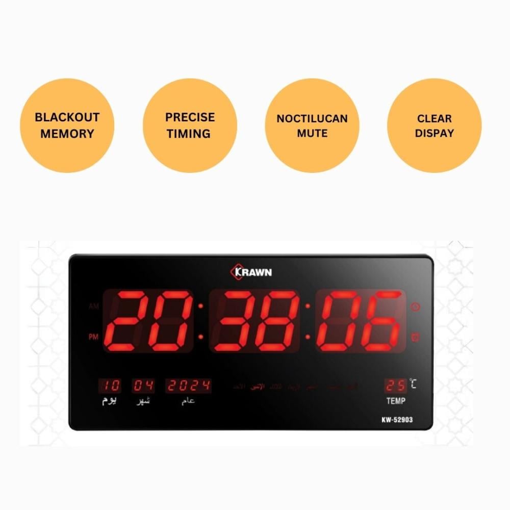 وصف المنتج – ساعة حائط رقمية KRAWN موديل KW-52903: