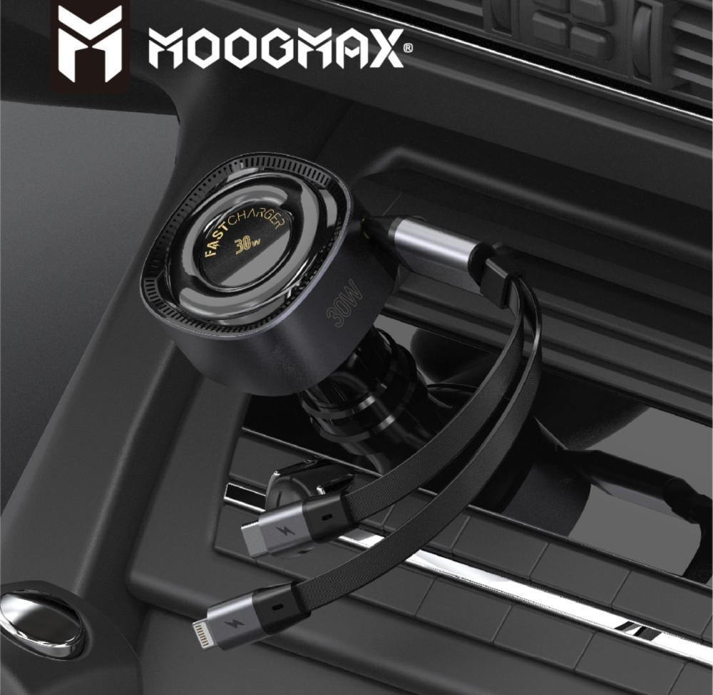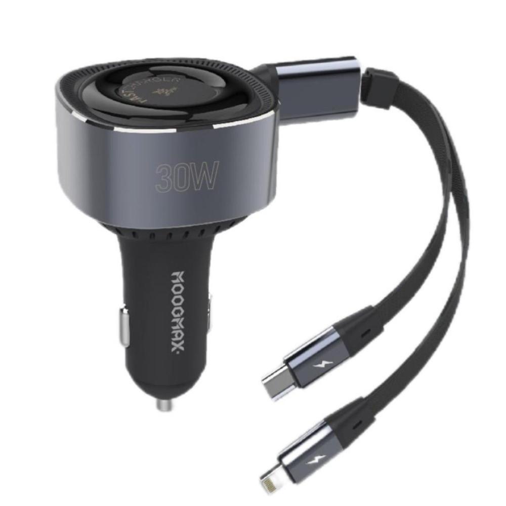 شاحن الجوال للسيارة مع سلك Pd و ايفون مدمجة بطول متر تنظيف الاسلاك بقوة 30 واط من TYPE-C & LIGHTNING A1399 moogmax