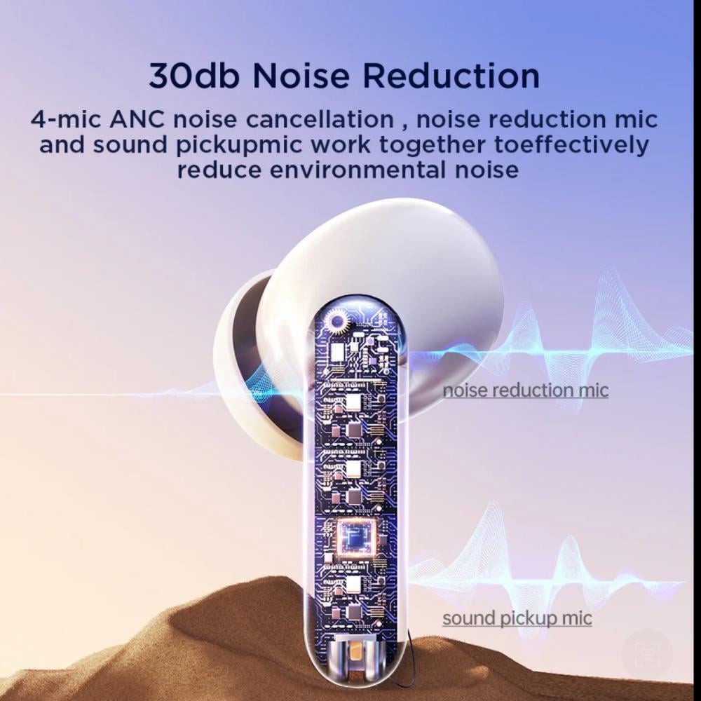 • تقنية تقليل الضوضاء ANC تم تجهيز سماعة الأذن اللاسلكية الحقيقية هذه بأربعة ميكروفونات وتقنية تقليل الضوضاء النشطة من ANC ، والتي يمكن أن تقلل بشكل فعال من تداخل الضوضاء المحيطة وتوفر تجربة موسيقية أكثر وضوحًا وغامرة.