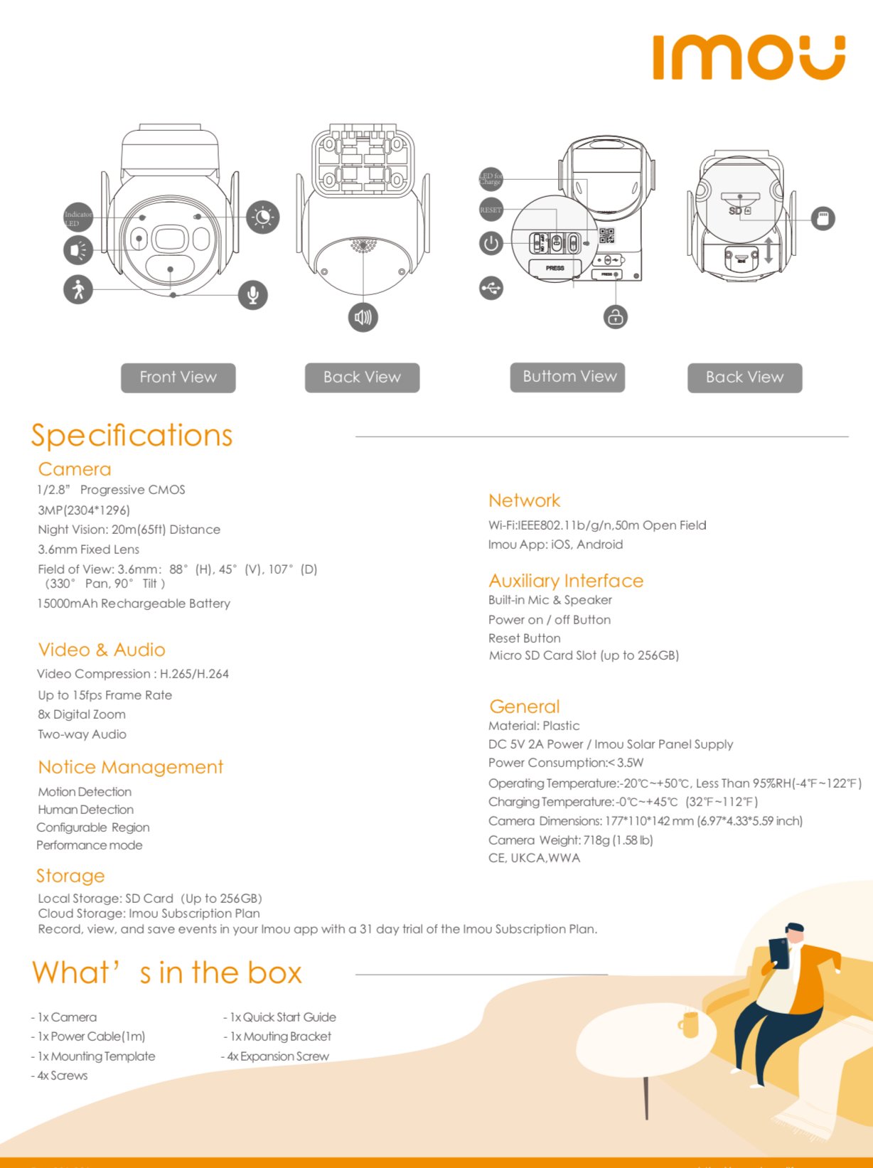 - تدعم تخزين الفيديو على السحابة، بطاقة SD أو جهاز تسجيل الفيديو (NVR).