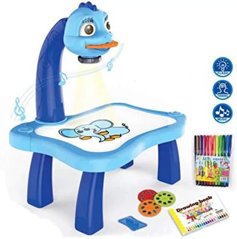 بروجكتر رسم للاطفال - طاولة رسم مع 3 اقراص صور مختلفة و 12 قلم ألوان