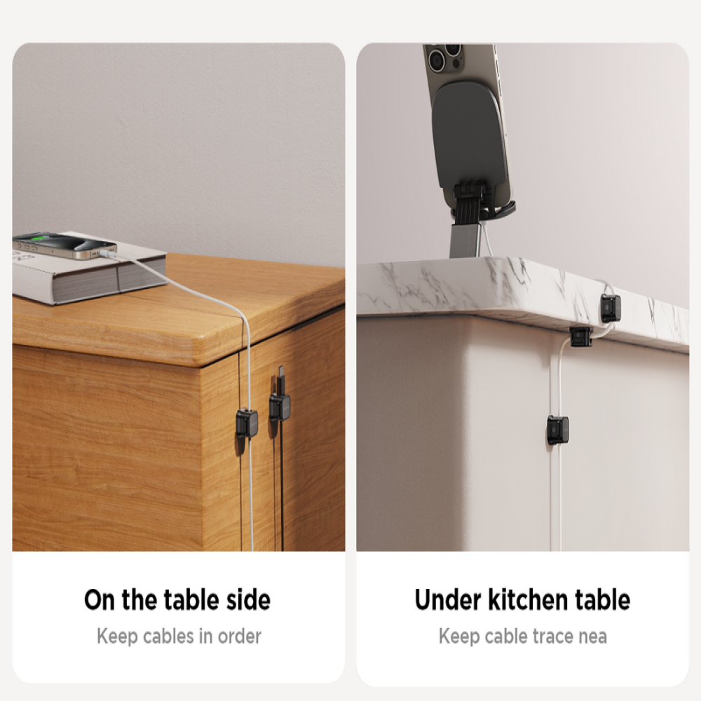 التصميم المغناطيسي: يتميز المنظم بقاعدة مغناطيسية قوية تُثبّت الكابلات بإحكام، مما يضمن ثباتها ومنع تشابكها.