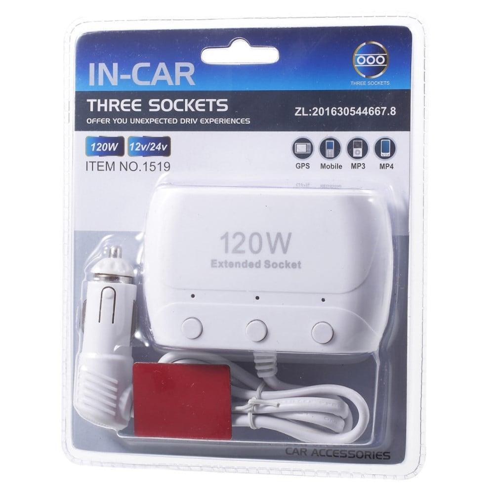 توصيلة للسيارة تعمل على منفذ الولاعة ٣ مداخل مع تحكم لكل منفذ بقوة ١٢٠ واط
